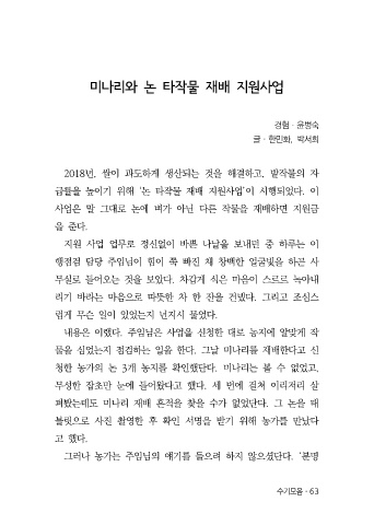 펴봤는데도 미나리 재배 흔적을 찾을 수가 없었단다. 그 논을 태