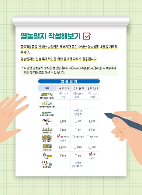 공익직불금을 신청한 농업인은 재배기간 동안 수행한 영농활동 내용을 기록해